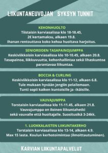 Olet täällä: Etusivu » Ajankohtaista » Liikuntaneuvojan syksyn tunnit